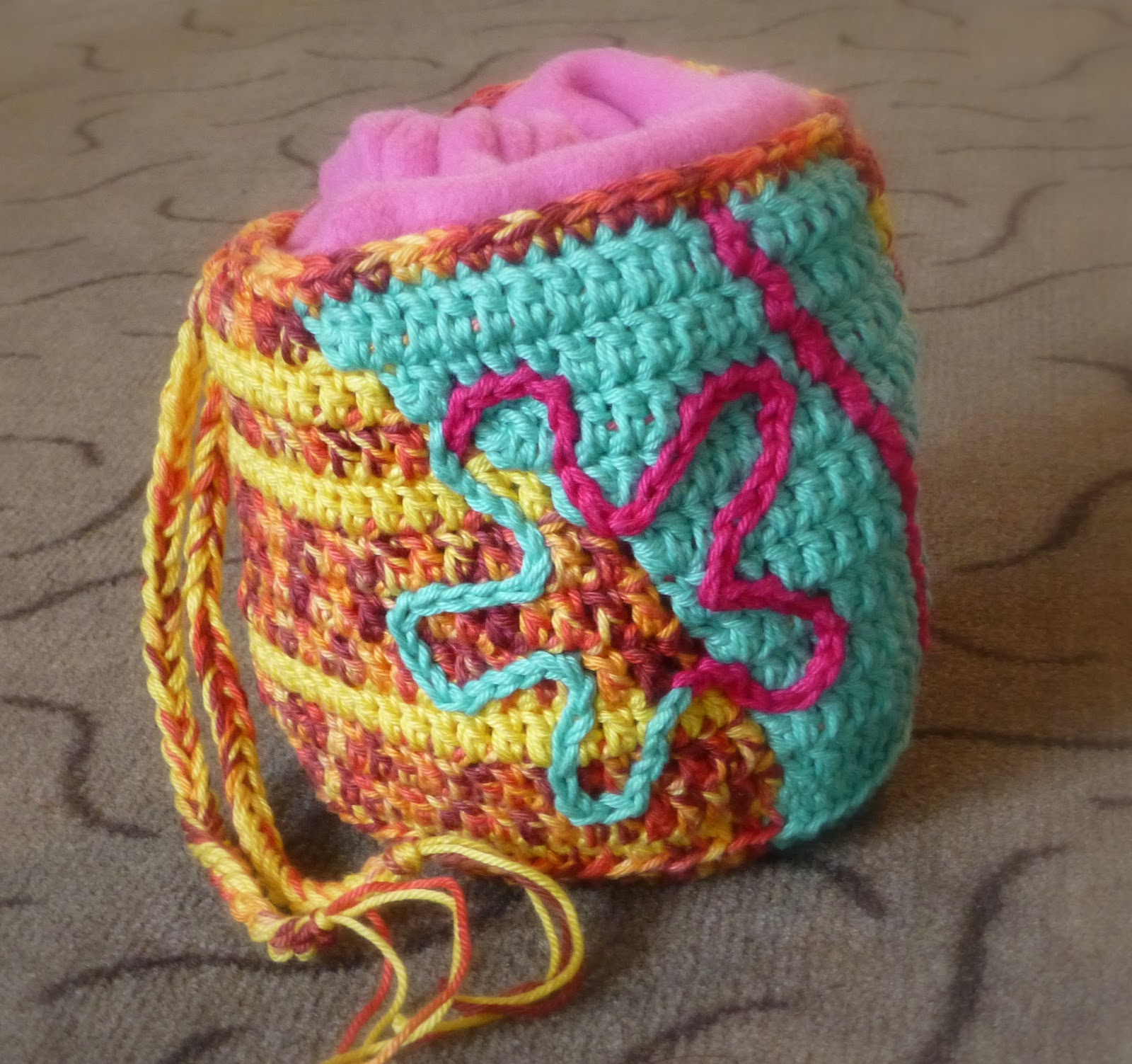 Reihe 7: 1 Runde FM, dabei jedoch unterhalb der FM der Vorrunde einstechen (dadurch ergibt sich das etwas gröbere Maschenbild, wie im Foto ersichtlich)